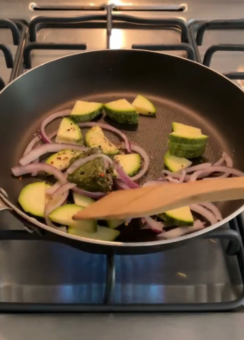 Sauté all sliced vegetables w/pesto