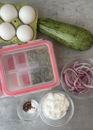 - Whisk the eggs, greek yogurt, and salt until well combined. Set aside.