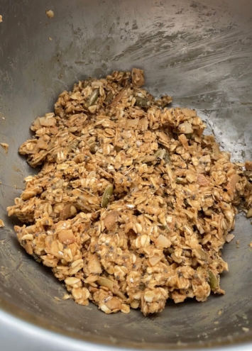 Optional step: Toast your oats (and nuts if raw) in a 350-degree F (176 C) oven for 10-15 minutes or until slightly golden brown. Otherwise, leave them raw. (I prefer the toasted flavor)
